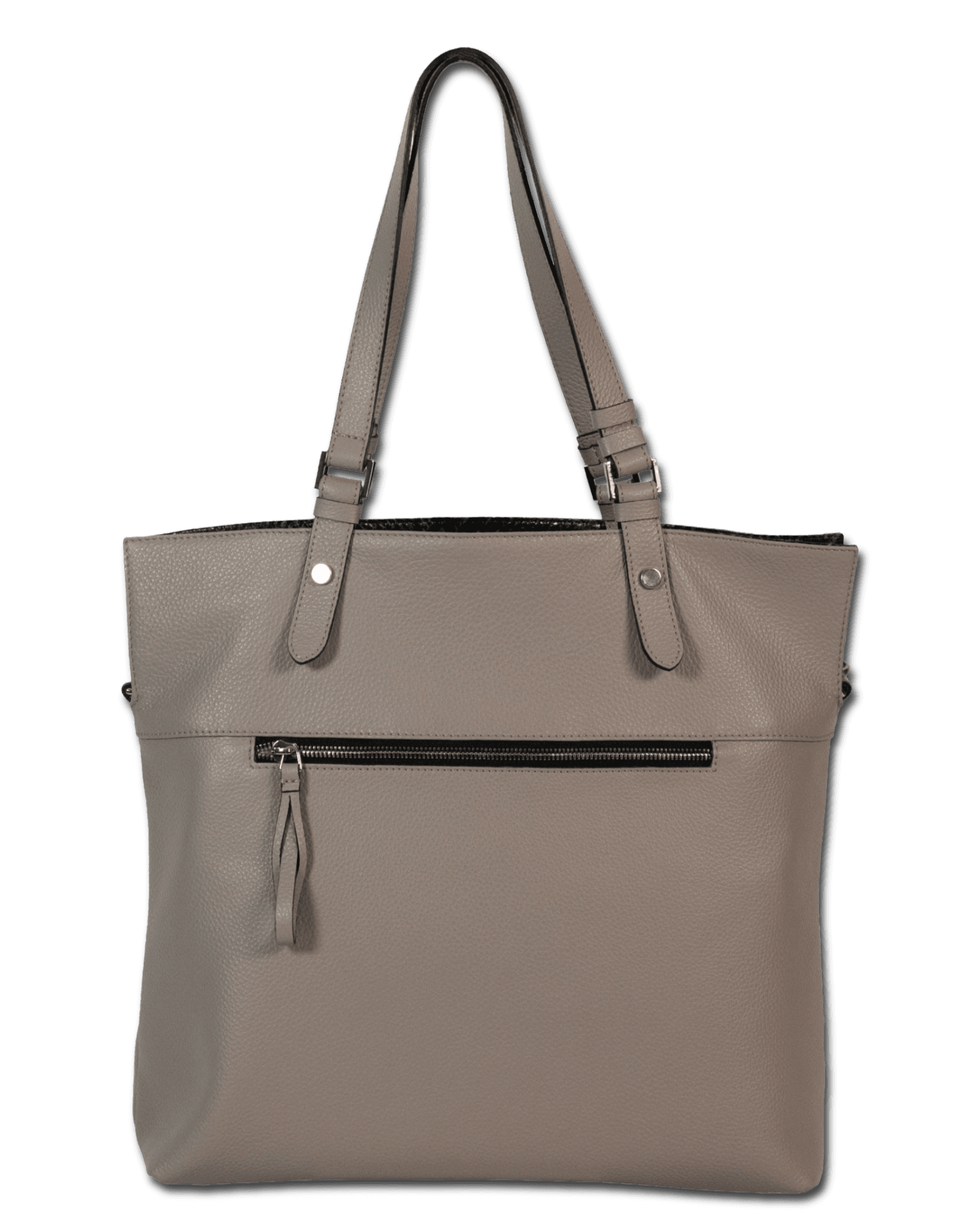 Geanta din piele naturala, se poate purta in mana si pe umar datorita curelei detasabile. Completeaza perfect tinuta casual-office. La acest model fiecare combinatie este unica.