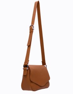 Inchiderea cu capac care mascheaza fermoarul exterior, disponibila in culori luminoase si elegante.
